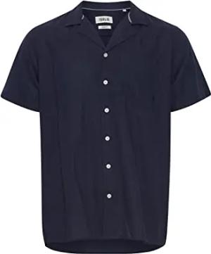 !Solid SDAllan Cuba Herren Kurzarmhemd aus Leinenmix Herrenhemd Hemd Bowlinghemd Cuba-Kragen Umlegekragen Oversize Fit Hochwertige Viskose-Qualität, Größe:M, Farbe:Insignia Blue (194010)