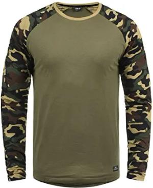 !Solid SDCajus Herren Longsleeve Langarmshirt Shirt mit Camouflage-Muster Rundhals-Ausschnitt Baumwollmischung Regular fit, Größe:L, Farbe:Dusty Oliv (3784)