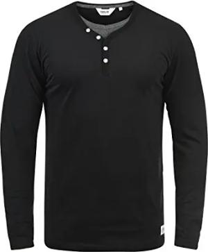 !Solid SDDoriano Herren Longsleeve Langarmshirt Shirt mit Grandad-Ausschnitt Baumwollmischung Regular fit, Größe:M, Farbe:Black (9000)