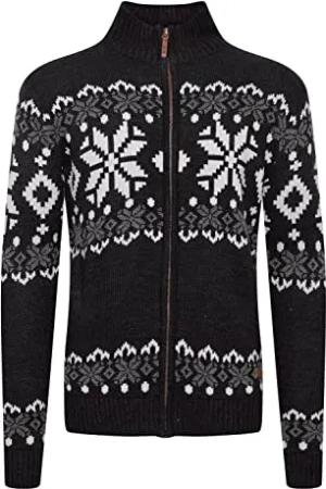 !Solid SDNoran Herren Strickjacke Cardigan Grobstrick mit Stehkragen und Reißverschluss Norweger Muster, Größe:L, Farbe:Black (799000)