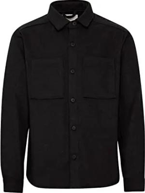 !Solid SDTam Herren Freizeithemd Hemd Shacket Fleecehemd Hochwertige und robuste Polyester Qualität wärmend Hemdkragen, Größe:XL, Farbe:Black (194007)