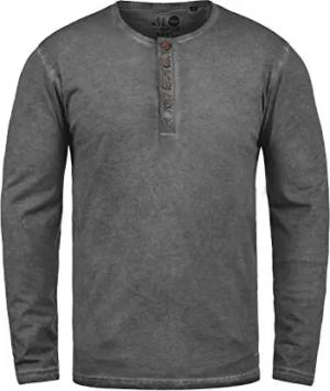 !Solid SDTimur Herren Longsleeve Langarmshirt Shirt mit Grandad-Ausschnitt 100% Baumwolle Regular fit, Größe:M, Farbe:Dark Grey (2890)