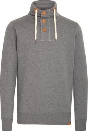 !Solid SDTripTroyer Herren Sweatshirt Troyer Pullover mit Stehkragen Knopfverschluss Reißverschluss Kordelzug Rippbündchen Baumwollmischung Regular fit, Größe:L, Farbe:Grey Melange (8236)