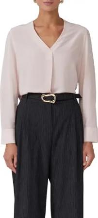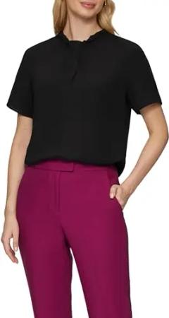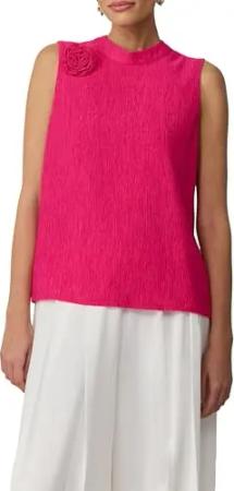 Strukturiertes Blusentop mit Abnehmbarer Brosche pink 44