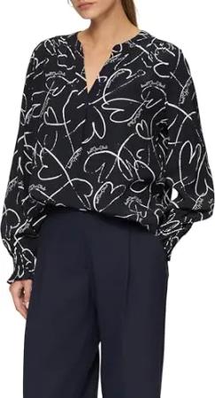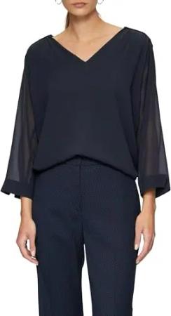 S.Oliver Damen Chiffon-Bluse Mit Smokdetails Bluse, 5959_Navy, 34 EU