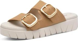 Damen Pantoletten mit Schnallen Plateau, Braun (Camel), 39 EU