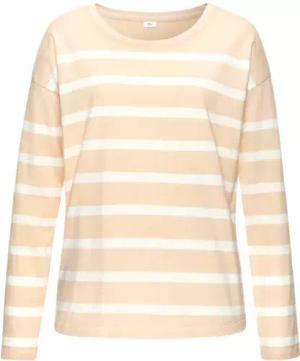 Damen Pyjama beige-weiß-gestreift Gr.40/42