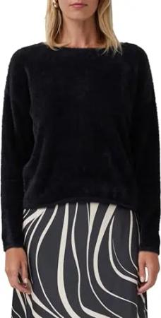 Flauschiger Pullover mit U-Boot-Ausschnitt