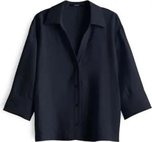 Damen Dreiviertelarmbluse | Hemdbluse ZEMILY Loose aus strukturierten Viskose-Mix Ocean, S