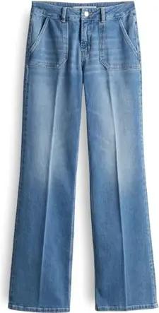 Damen Flared | Long Flared Denim Carie Utility aus nachhaltigem Baumwoll Mix mid Ocean Blue, 34