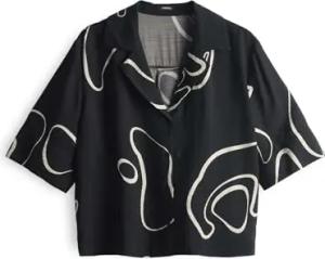 Damen Kurzarmbluse | Printbluse ZESORA Loose mit abstarktem Printdesign Black, 40