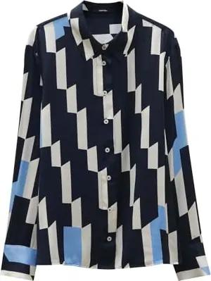 Damen Kurzarmbluse | Printbluse ZINNOVA Loose in Satin Optik Ocean, 38