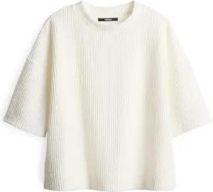 Damen Kurzarmshirt | Boxy Shirt KEVELUNA Detail Loose in 3D Streifen Optik Milk, 40