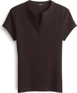 Damen Kurzarmshirt | Geripptes Shirt KLEOH Detail mit V-Ausschnitt Dark Espresso, 40