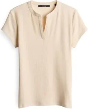 Damen Kurzarmshirt | Geripptes Shirt KLEOH Detail mit V-Ausschnitt Natural Glaze, 36