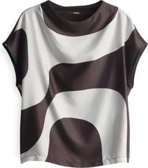 Damen Kurzarmshirt | KESORA Print Regular aus fließendem Material Mix Dark Espresso, 38
