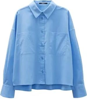 Damen Langarmbluse | Cropped Bluse ZOPPA Detail Loose aus nachhaltiger Baumwolle Azure Blue, 42