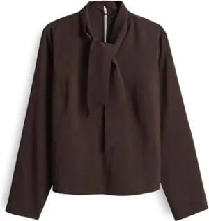 Damen Blusentop | ZHANALI Slim Blusentop in feiner Twilloptik Dark Espresso, 36