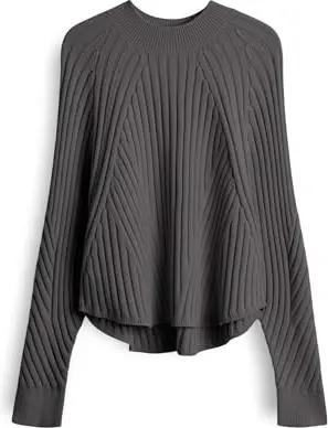 Damen Pullover | TOUANN Regular Rippstrickpullover aus ECOVERO™ Viskose Mix ashy Grey Melange, S