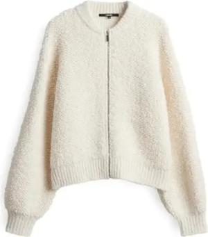 Damen Strickjacke | TILARA Loose Voluminöse Blousonjacke aus Bouclégarn Soft Cream, 38