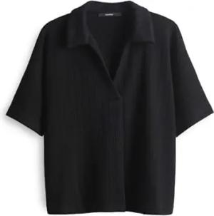 Damen Sweatshirt | Poloshirt UJADE Loose mit texturierter Rippstruktur Black, M