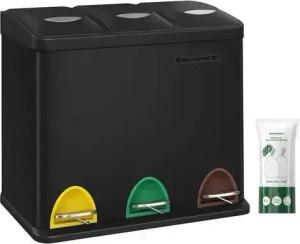 Mülleimer Küche, 3 x 8 L, kleine Kapazität, Mülltrennsystem 3 Fächer, Abfalleimer mit Deckel, Stahl-Treteimer