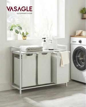 VASAGLE Wäschekorb 3 Fächer, Wäschesammler mit Ablage, Wäschebox, Wäschesack aus Oxford-Gewebe ausziehbar abnehmbar