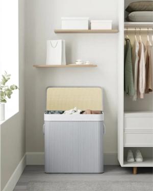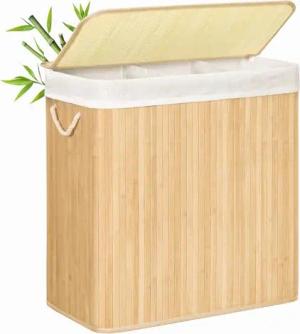 Wäschekorb, mit Deckel und Griffen, aus Bambus, 3 Fächern, 150 L