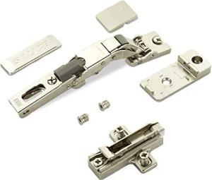 2 x Salice Universalscharnier für Glastür oder Spiegeltür 110° inkl. Kreuz-Montageplatte Höhe 3 mm mit Euroschrauben, Exzenterverstellung, Möbelscharniere mit Abdeckkappen