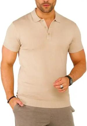 Herren Poloshirt Crochet Kurzarm Cardigan Knit Strick-Polo T-Shirt Freizeit Männer Polo-Hemd Men's Sommer-Fit S2_JITTERBURG-Tan-XL