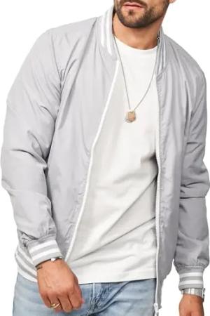 Herren Blouson-Jacke als leichte Übergangsjacke - Dünne Bomberjacke mit Baseball Stehkragen im Collegejacken Stil für Männer - Men's Jacket S2_ANDORY-Grey-S