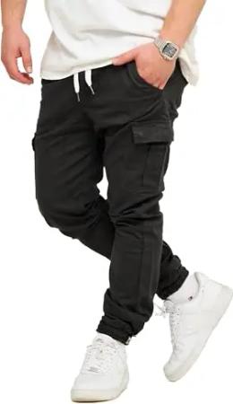 Herren Cargo Jogger Jeans-Hose mit Gummibund Stretch Jeans Männer Freizeithose S2_3888-Schwarz-W30