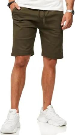 Herren Chinoshorts Kurze Hose mit Gummibund & Tunnelzug - Sommershorts Bermuda für Männer - Elastische Shorts im Regular-Fit S2_Mafia-Olive-M