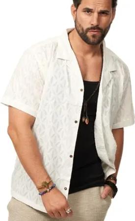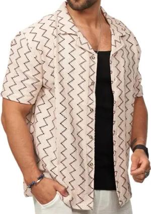 Herren Hemd Kurzarm Overshirt Freizeithemd T-Shirt Regular-Fit Vintage Sommer-Look S2_Scott-Ecru-XXL