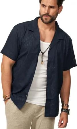 Herren Hemd Kurzarm Overshirt Freizeithemd T-Shirt Regular-Fit Vintage Sommer-Look S2_Scott-Navy-XL