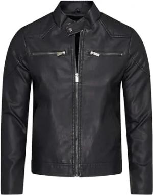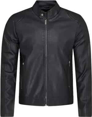 Herren Kunstlederjacke Leichte Übergangsjacke Biker-Jacke Freizeitjacke Jacket Schwarz Black S2_MANE-Schwarz-S