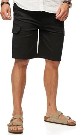 Herren Kurze Hose Cargoshorts mit Gummibund & Gürtelschlaufen - Sommershorts Bermuda für Männer - Elastische Chinoshorts im Regular-Fit S2_HAMM-Black-M