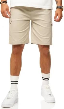 Herren Kurze Hose Cargoshorts mit Stretch - Bermuda Sommershorts für Männer - Elastische Chinoshorts im Regular-Fit S2_GIDLEY-Stone-W38