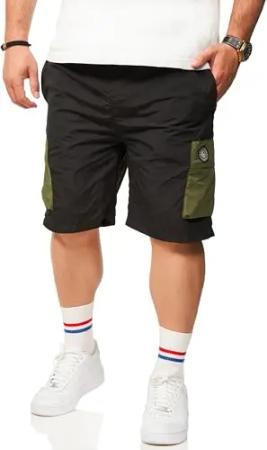 Herren Kurze Hose Cargoshorts Tech Utility-Style Sommershorts aus Leichtem Nylon - Luftige Bermuda-Shorts mit Gummibund für Männer - Regular-Fit S2_STISH-Black-L
