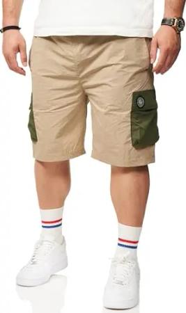 Herren Kurze Hose Cargoshorts Tech Utility-Style Sommershorts aus Leichtem Nylon - Luftige Bermuda-Shorts mit Gummibund für Männer - Regular-Fit S2_STISH-Stone-M