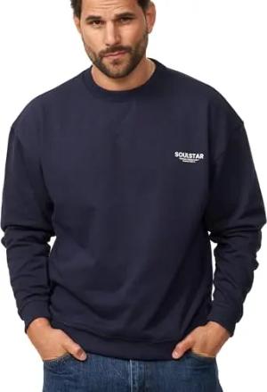 Herren Oversize Sweatshirt Rundhals-Ausschnitt Pullover Crew-Neck Logoprint Einfarbig Sweater Für Männer S2_Present-Crew-Navy-S