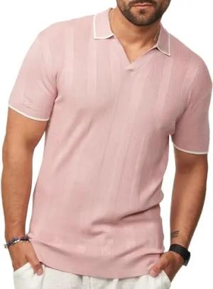 Herren Poloshirt Kurzarm Knit Strick-Polo T-Shirt Freizeit Männer Polo-Hemd Men's Fit S2_Sunset-Mauve-XXL