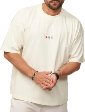 Herren T-Shirt Oversized Fit Kurzarm 100% Baumwolle Rundhals Male Tee Crew-Neck Männer Oberteil S2_8-BIT-Ecru-L