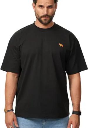 Herren T-Shirt Oversized Fit Kurzarm 100% Baumwolle Rundhals Male Tee Crew-Neck Männer Oberteil S2_Hotdog-Black-S
