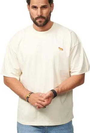 Herren T-Shirt Oversized Fit Kurzarm 100% Baumwolle Rundhals Male Tee Crew-Neck Männer Oberteil S2_Hotdog-Ecru-M