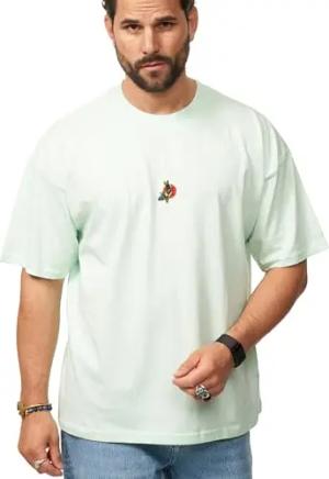 Herren T-Shirt Oversized Fit Kurzarm 100% Baumwolle Rundhals Male Tee Crew-Neck Männer Oberteil S2_KOI CARP-Mint-M