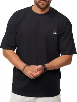 Herren T-Shirt Oversized Fit Kurzarm 100% Baumwolle Rundhals Male Tee Crew-Neck Männer Oberteil S2_Fuji-Navy-M