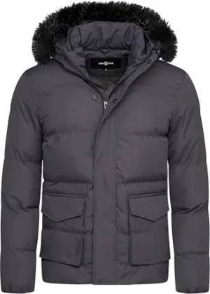 Herren warme Winterjacke mit Kapuze Parka Winter-Mantel Steppjacke Jacket Puffer-Jacke S2_ADLER-Charcoal-M