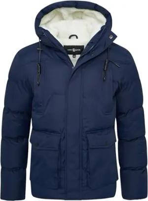 Herren warme Winterjacke mit Kapuze Teddyfell Gefütterte Steppjacke Outdoorjacke Pufferjacke Mens Jacket S2_MOORLAND-J25-Navy-M