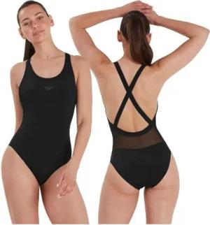 Damen Eco Endurance+ Power Cross Back Badeanzug | Athletische Passform | Klassisches Design | Recyclingmaterial | Chlorbeständig | Besonders flexibel Schwimmbekleidung, Schwarz, 38